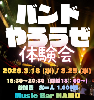 バンドやろうぜ体験会開催決定!楽器をやってみたい方、バンドに興味がある方メンバーを見つけたい方初めての方も大歓迎!